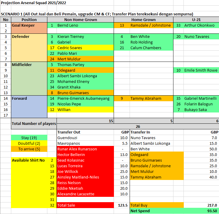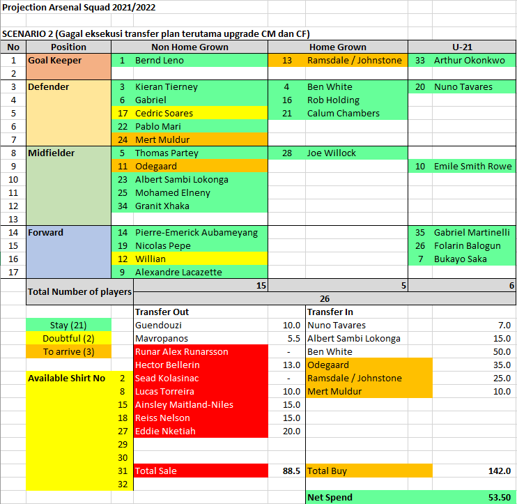 - Net spending Arsenal hampir sama dengan skenario optimis, yaitu sekitar 90 juta pounds, kalkulasi saya mengenai budget belanja pemain Arsenal ternyata tidak malu-maluin.