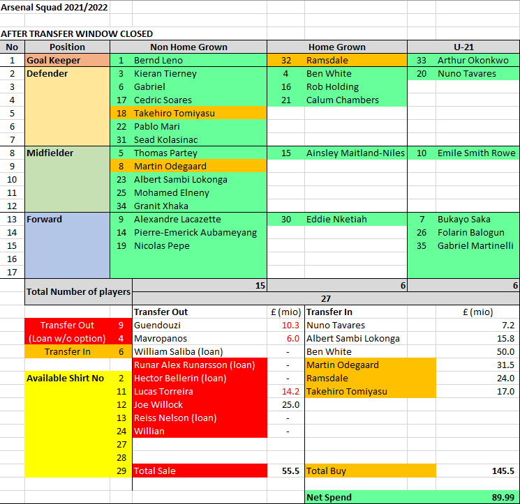 Karena KSE bukan bank yang cetak uang, 145 juta pounds miliknya dibelanjakan oleh Arsenal untuk 6 pemain muda yang akan meningkatkan kualitas tim, walau mungkin mereka butuh waktu lebih lama untuk memberikan dampak langsung. Bandingkan dengan City dan Chelsea yang belanjakan uang 100 juta pounds untuk seorang pemain elit. Edu berkata tujuan transfer kali ini adalah membangun pondasi. Di masa mendatang Arsenal mungkin hanya akan melakukan pembelian 1-2 pemain elit untuk melengkapi kualitas tim yang sudah cukup bagus. Tapi saat ini kita masih belum sampai ke sana. Seperti kata Arteta, kita perlu merekrut pemain di banyak posisi dari GK, RB, LB, CB, CM, AM, ST. Dari ketujuh posisi ini, enam terpenuhi dari transfer window ini dan yang lebih penting, keenam pemain ini memiliki kualitas (atau potensi) yang lebih tinggi daripada pemain yang akan digeser/ digantikan mereka di tim Arsenal.